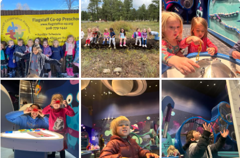 Flagstaff Cooperative Preschool’s mission is to develop the intellect, personality, body and heart of each child by creating a cooperative environment filled with experiences in tune with each child’s individual characteristics, interests, and family backgrounds. We promote interactive learning experiences while at play, and support the development of every child’s self-esteem, self-reliance and positive view of life through family and community involvement.